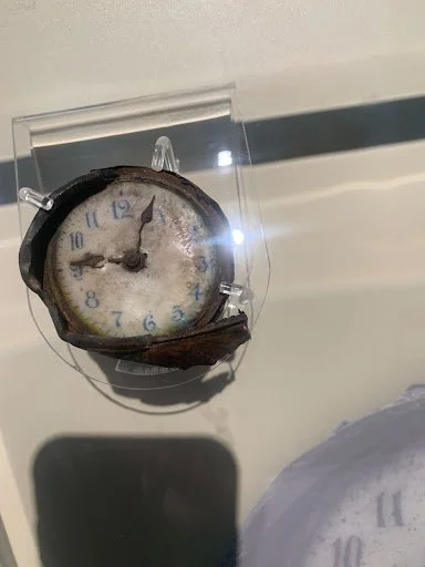Photo of a melted clock from the Halifax Explosion. Photo taken by Krista Collier-Jarvis at the Maritime Museum of the Atlantic.